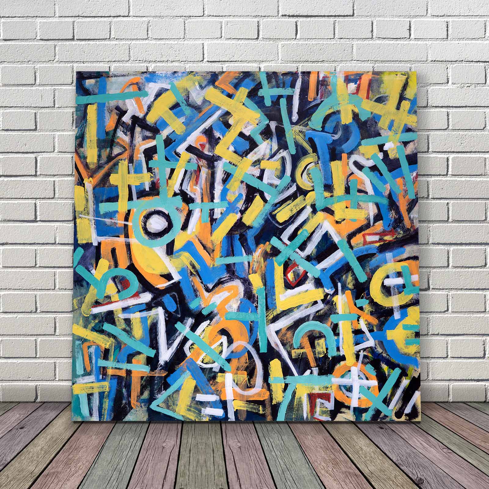 This modern abstract expressionism original is on high-quality Taiwanese canvas. It is painted edge to edge. It's 28 x 28 inches (71 cm x 71 cm). You can mount it on board and/or frame it. You have many choices to display your artwork. It has been signed on the back with a date.