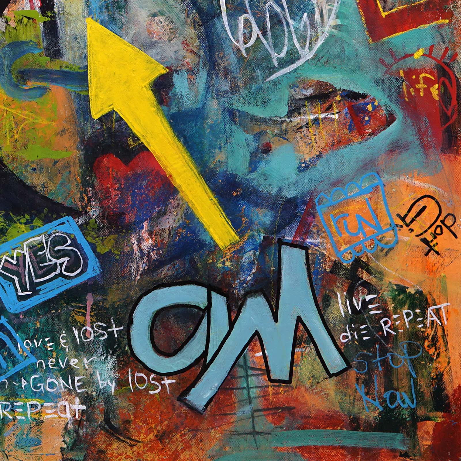 This modern Neo-expressionistic abstract original is on high-quality Taiwanese canvas. It is painted edge to edge. You can easily mount it and frame it. It's 28 x 28 inches (71 cm x 71 cm). It has been signed on the front and back with a date.